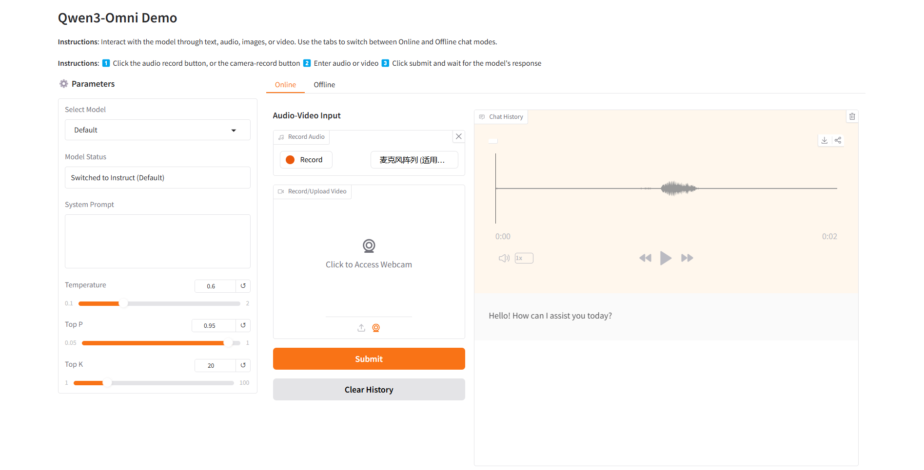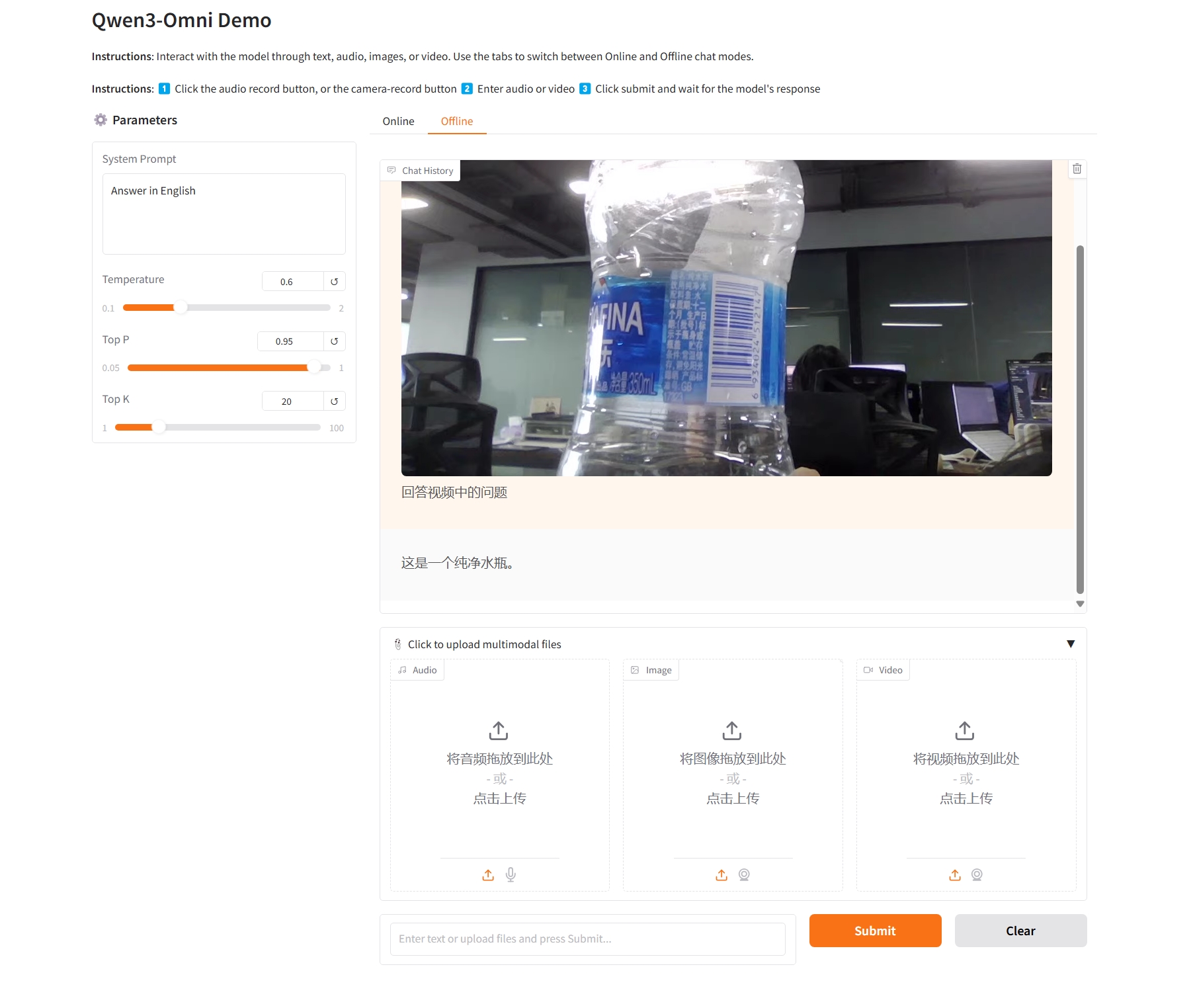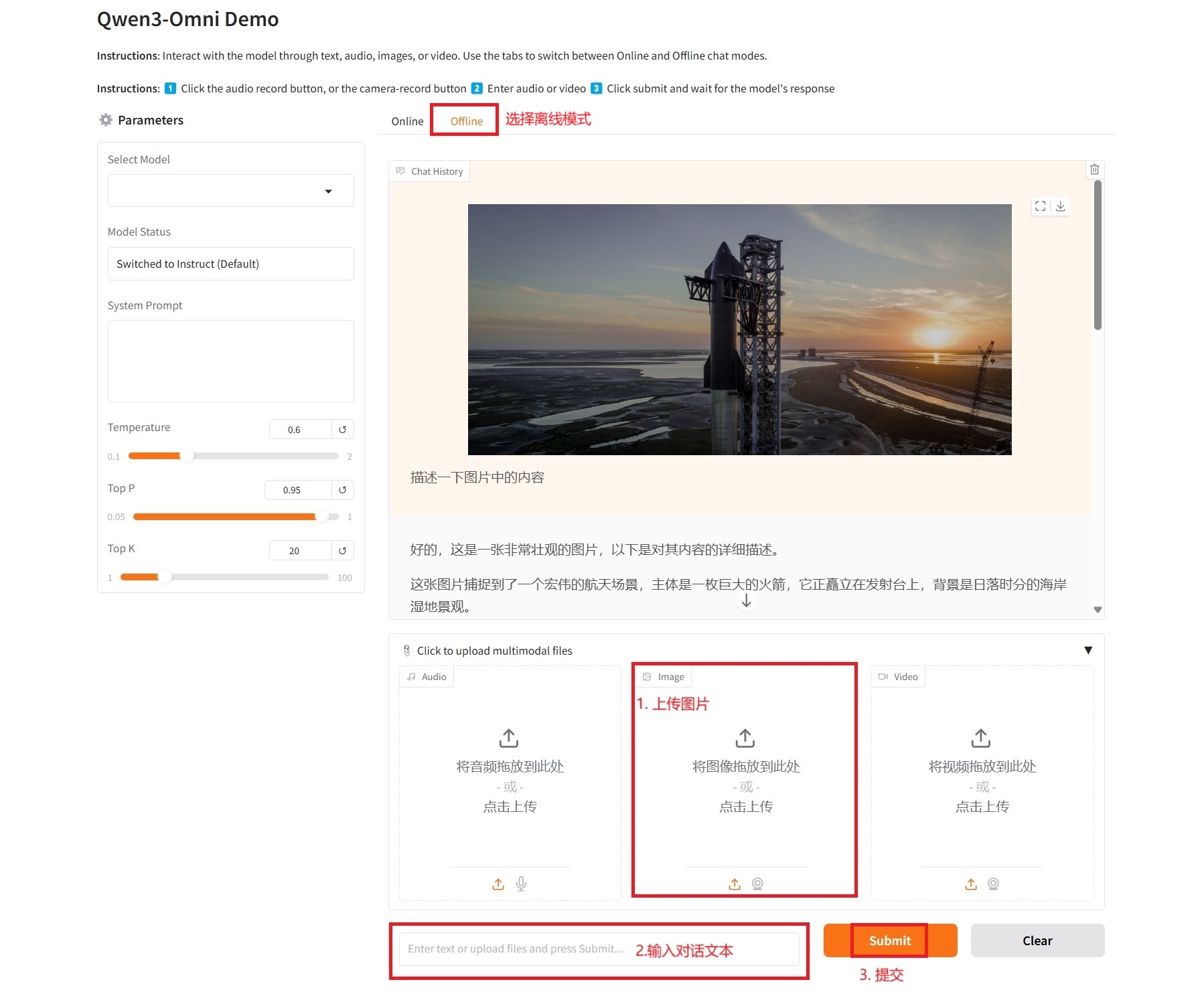 该教程算力资源采用双卡 RTX A6000,提供 Qwen3-Omni-30B-A3B-Instruct 和 Qwen3-Omni-30B-A3B-Thinking 两个模型供测试。