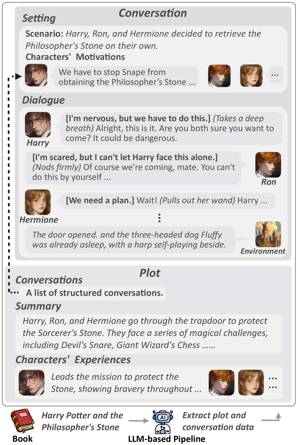 CoSER (CoOrdinating LLM-Based Persona Simulation of Established Roles) dataset is a large-scale real-world dataset focusing on role-playing, jointly constructed by Fudan University and Jieyuexingchen in 2025. The relevant paper results are "CoSER: Coordinating LLM-Based Persona Simulation of Established Roles". It extracts data from 771 of the world's most famous books, covering 17,966 characters and 29,798 real dialogues. Unlike previous datasets, the CoSER dataset not only contains character overviews and dialogues, but also provides rich content such as plot summaries, character experiences, and dialogue backgrounds. In addition, the dialogue content covers three dimensions: language, actions, and thoughts, making the character performance more three-dimensional. The uniqueness of the CoSER dataset lies in its authenticity and comprehensiveness. It extracts real character dialogues from classic literary works, retains the complexity of the dialogues, and is a natural multi-round, multi-character high-quality dialogue data.