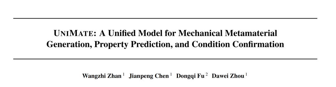 The research results, titled "UNIMATE: A Unified Model for Mechanical Metamaterial Generation, Property Prediction, and Condition Confirmation", were selected for ICML 2025.