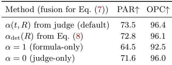 FLAE evaluates the report on three task-agnostic dimensions: Readability (READ.), Insightfulness (INSH.), and Structural Completeness (STRU.). This evaluation is conducted through a dual-channel approach. The formula-based channel computes per-dimension scores using a set of lightweight, directly observable text features ϕ(R), such as lexical diversity, sentence-length distribution, and compliance indicators like the presence of a references section. These features are mapped to scores via fixed, auditable transforms defined by linear models with sigmoid activation and clipping, ensuring reproducibility. The LLM judge channel uses a calibrated prompt to generate per-dimension scores based on the task and report. To combine these channels, FLAE employs an adaptive fusion mechanism. A judge LLM calculates a fusion coefficient α(t,R) that controls the mix between the formula and judge scores, with the coefficient constrained to depend only on model-agnostic signals like report length and formatting compliance. This adaptive fusion is designed to mitigate bias and ensure the final score is a balanced combination of objective metrics and expert judgment. The final FLAE score is a weighted sum of the fused per-dimension scores, where the weights are task-adaptive and determined by a separate judge LLM prompt.